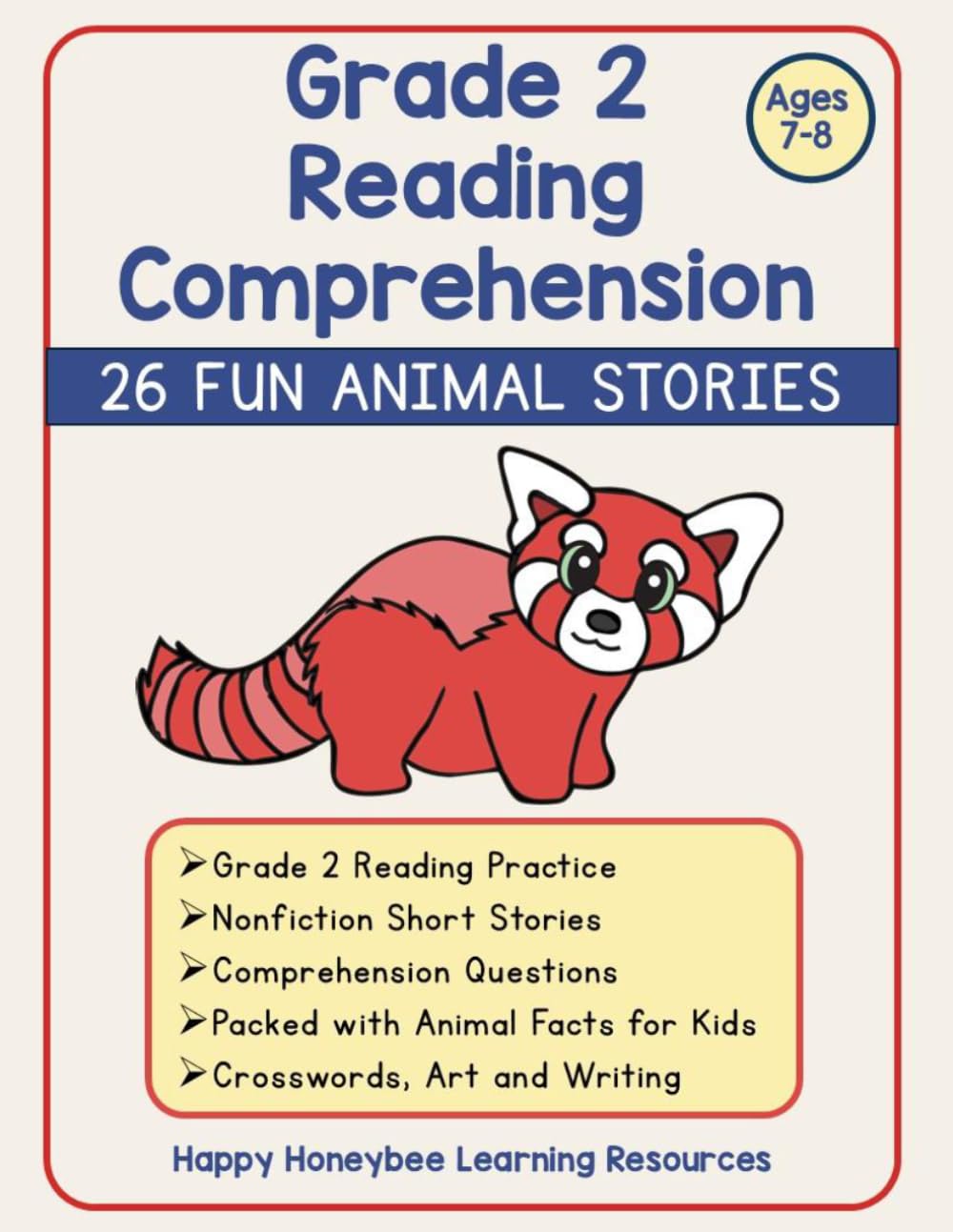 Grade 2 Reading Practice: 26 Animal Nonfiction Short Stories for age 7 to 8 with Comprehension Questions, Crosswords...